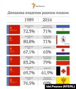 Количество татар, проживавших во всем Союзе, составляло 6,6 млн. Из них татарский называли своим родным языком 83,2%, и всего лишь две трети (70,8%) свободно изъяснялись по-русски. В РСФСР проживало 5,52 млн татар.
