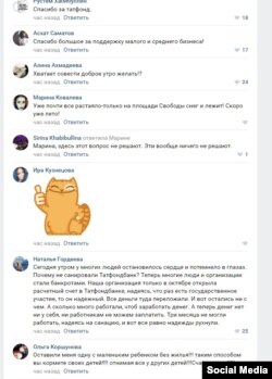 Некоторые открыто призывают к отставке Минниханова: "Я думаю, что вы, господин Минниханов, не имеете больше права занимать пост президента Татарстана. Мы ждем вашу отставку! Вы не справились с возложенными на вас задачами, уходите!". Другие пишут: "Гоните Халикова, сажайте Мусина!"