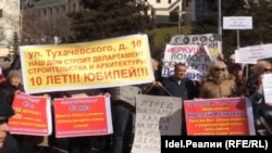 В Самаре во вторник прошел митинг обманутых дольщиков. Акция, собравшая, по наблюдениям корреспондента "Idel.Реалии", свыше 100 человек, прошла в сквере Калинина. В митинге участвовали обманутые дольщики строительных компаний "Волгагрупп", "Профит" и "Горос".