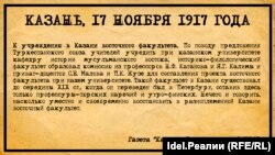 К учреждению в Казани восточного факультета. По поводу предложения Туркестанского союза учителей учредить при казанском университете кафедру истории мусульманского востока, историко-филологический факультет образовал комиссию из профессоров Н.Ф. Катанова и Я.Г. Калимы и приват-доцентов С.Е. Малова и П.К. Жузе для составления проекта восточного факультета при нашем университете. Такой факультет в Казани существовал до середины XIX ст., когда он переведен был в Петербург, оставив здесь только профессуры-тюрских наречий и угро-финских. Нечего и говорить, насколько уместно и своевременно восстановить в разноплеменной Казани восточный факультет.