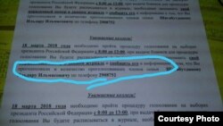 "Руководство требует отчёта о том, что он проголосовал, в виде звонка на телефон с указанием порядкового номера из журнала, где избиратели ставят подпись за получение бюллетеня для голосования, а также количество родственников, с кем проживаешь в квартире, и участвовали или нет они на выборах. Имеется фотография с инструкцией, что и как делать, кому звонить и на какой номер телефона," — сказано в сообщении.