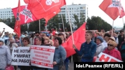 Помимо активистов КПРФ "Левым фронта", в митинге приняли участие представители партии Яблоко, а также троцкистской "Революционной рабочей партии".