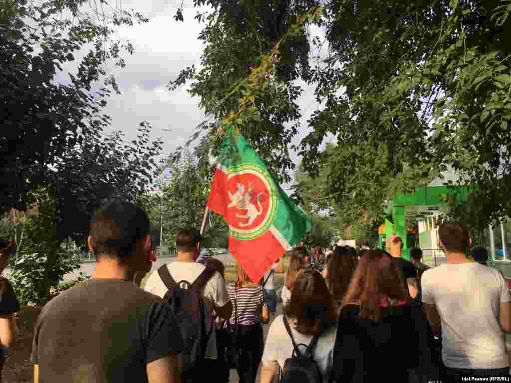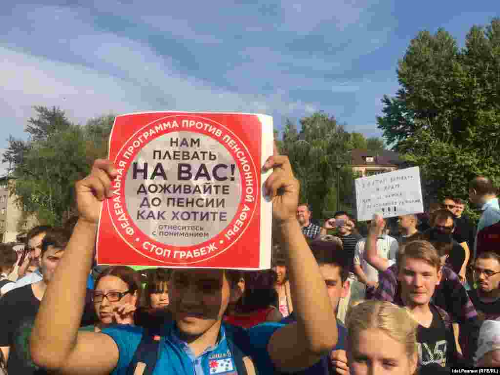 Акция прошла в парке Тинчурина. Исполком города не согласовал митинг, предложив организаторам провести его в посёлке Юдино. Сторонники Навального тем не менее призвали активистов прийти в парк Тинчурина. В акции приняли участие около 500 человек. Двое человек, державших плакат "Нет пенсионной афере", были задержаны. Митинг медленно превращается в шествие. Часть протестующих (около 200 человек) приняла решение идти в сторону центра Казани, пока неизвестно, куда именно.