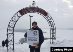 Активисты стояли с плакатами "Незаконно арестована за политические взгляды Анастасия Шевченко", "Свободу Насте". Ранее аналогичные пикеты прошли в Казани.
