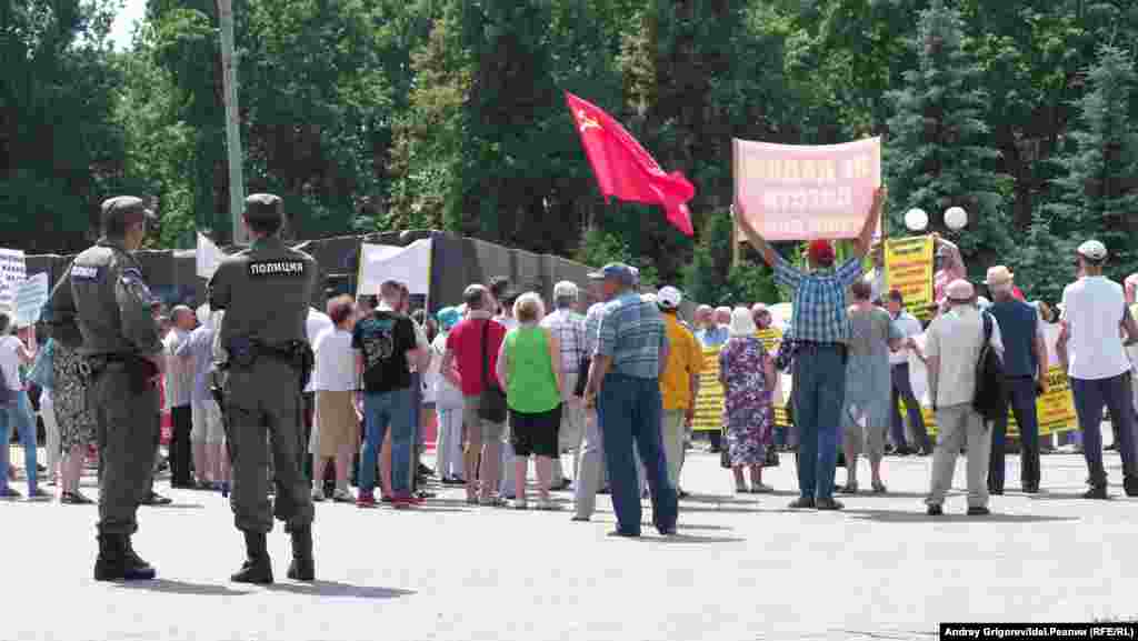 Неожиданностью для участников митинга, состоявшегося в Кировском районе у Красных ворот, стало отсутствие ставших уже привычными для казанских митингов ограждений с досмотром каждого входящего на территорию, отведенную под митинг, сотрудниками полиции. Да и самих полицейских были непривычно мало. Фотокор "Idel.Реалии" насчитал всего пятерых блюстителей закона в форме и, кроме того, не заметил примелькавшихся уже лиц сотрудников центра "Э".