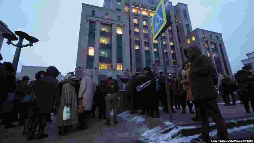 Не меньше тридцати активистов, возражающих против строительства мусоросжигательного завода в Осиново, собралось 19 декабря утром на крыльце Кабмина РТ перед встречей инициативной группы с республиканскими чиновниками. Люди настаивают на встрече с Миннихановым и требуют снять наказания с общественников, которых 16 декабря задержал ОМОН при ликвидации палаточного лагеря Диоксиново. Подробнее об этом можно прочитать здесь.