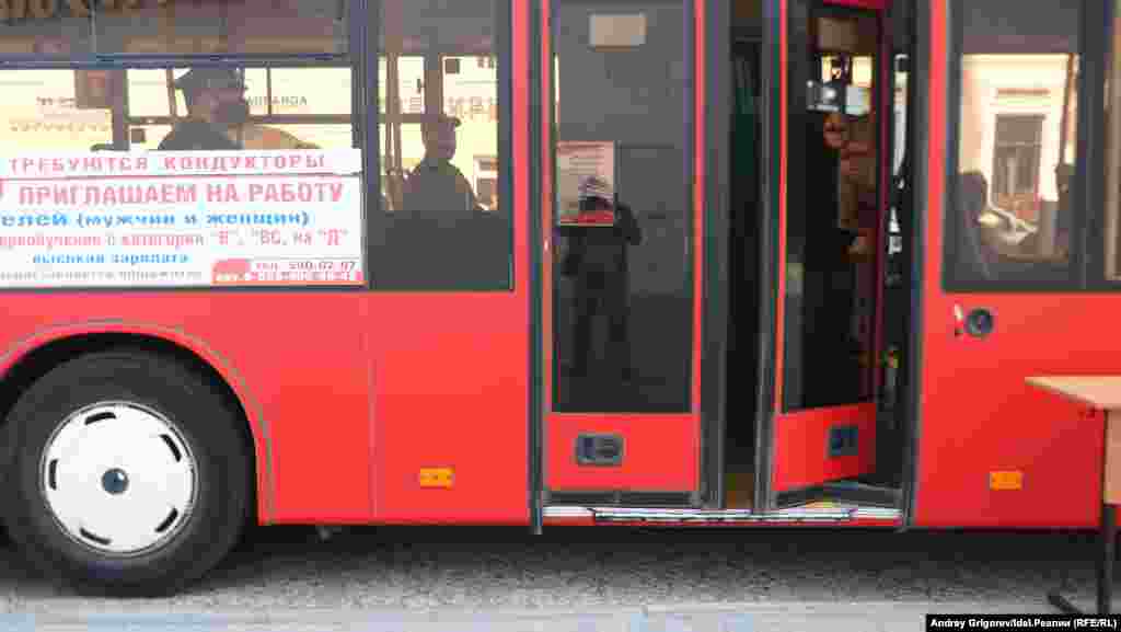 Второй такой автобус обнаружил в центре Казани колумнист "Idel.Реалии" Искандер Ясавеев. Проголосовать в нём можно было с 9 до 14 часов — но особого ажиотажа среди населения не наблюдалось, отмечает Ясавеев.
