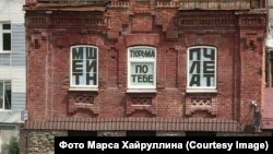 Марс Хайруллин живет в старинном доме под казанским кремлем. На протяжении десяти лет он вывешивает на фасадах своего дома обличающие власть плакаты.