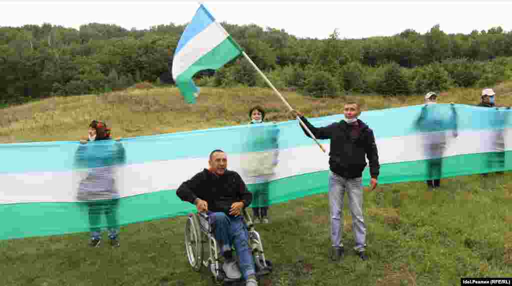 Лозунги "Хабиров, уходи!", "Хабаровск мы с тобой!", "Куштау, яшә!" тут скандируют, выстроившись в живую цепь длиной в 4 км и схватившись за триколор — только не российский, а башкирский.