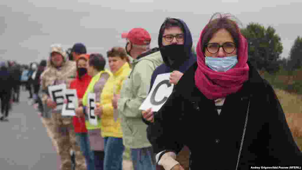 На автодороге у села Тарлаши, вдоль которого проектировщики планируют протянуть магистраль, собралось около семисот человек. Люди стояли вдоль трассы, держа в руках буквы, которые складывались в названия их населенных пунктов. Затем участники схода выстроилось в гигантские буквы так, чтобы сверху можно было прочитать слово "Стоп". Организаторы снимали акцию с квадрокоптера.