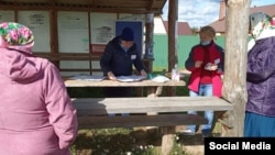 Так проходит выездное голосование в глубинке Чувашии — в Моргаушском районе в деревне Тябакасы. Избиратели голосуют прямо на улице. Наблюдатель Инесса Мышева сообщает, что нарушений нет.