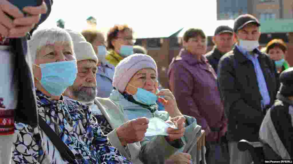 Организаторы "Пеледыш Пайрем" выдавали всем посетителям кремля одноразовые маски, обрабатывали руки входящих антисептиком. Вероятно, большая часть зрителей была в масках.