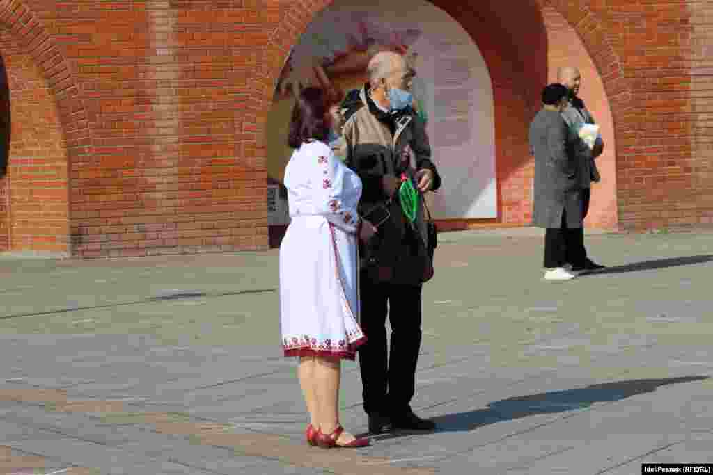 Организаторы "Пеледыш Пайрем" выдавали всем посетителям кремля одноразовые маски, обрабатывали руки входящих антисептиком. Вероятно, большая часть зрителей была в масках.