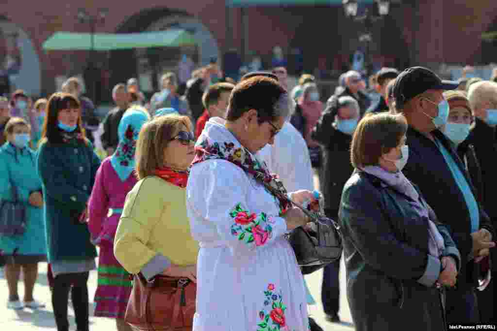 Организаторы "Пеледыш Пайрем" выдавали всем посетителям кремля одноразовые маски, обрабатывали руки входящих антисептиком. Вероятно, большая часть зрителей была в масках.