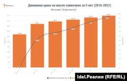 "Сахар подорожал почти вдвое, яица и подсолнечное масло — на треть. За год цены на основные продукты питания выросли на 46%. И это только официальная статистика Татарстанстата. Курица за год подорожала на 16,9%, яица — на 34,2%, яблоки — на 16,1%, подсолнечное масло на 30%, а сахар — на 79,5%".
