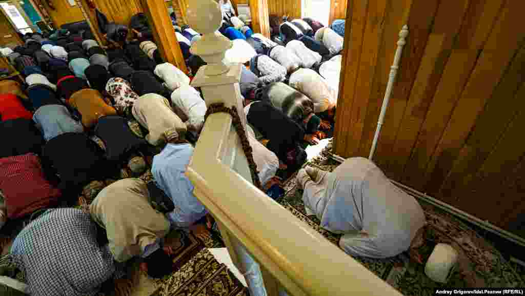 Верующие начали собираться в "Гадел" с пяти утра. Двухэтажное деревянное здание расположено на южном выезде из Казани у РКБ. За последние годы здесь разрослись жилые микрорайоны — Солнечный город и Ферма-2. Поэтому места внутри люди спешат занять заранее. Ближе к шести оба этажа здания оказались забиты, часть верующих расположилась на молитву во дворе. По оценкам имам-хатыйба мечети Рустема Бакирова, на праздничную молитву собрались не менее 700 человек.