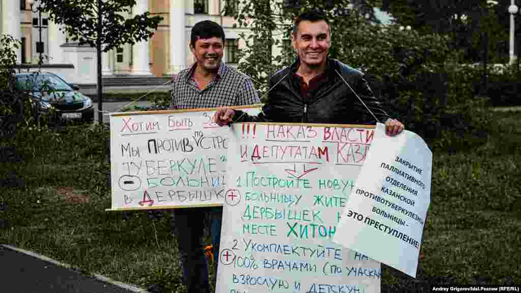 Около десяти жителей Дербышек вышли в четверг, 26 августа, на пикет против размещения туберкулёзного диспансера в казанском посёлке. Диспансер разместили в здании бывшей больницы посёлка, которая закрылась около десяти лет назад.