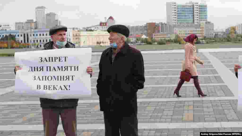 Наконец, в 2020 году проведение Хәтер көне попытались и вовсе сорвать: мэрия Казани отозвала согласование на проведение митинга, обосновав это требованием прокуратуры. После того, как активисты ВТОЦ подали в суд, проведение Дня памяти было разрешено: он прошел 18 октября в сквере имени Тинчурина. Параллельно идут попытки маргинализировать сам Всетатарский общественный центр. Прокуратура РТ подала в суд иск о признании ВТОЦ экстремистской организацией. Лидера ВТОЦ Фарита Закиева дважды за год осудили по ст. 20.2 КОАП РФ (Нарушение порядка организации или проведения массовой акции). Очередную "повестку" сотрудники центра "Э" (управление по борьбе с экстремизмом при МВД РТ) Закиеву вручили после акции в поддержку Хәтер көне. Пока его вызывают лишь в статусе "свидетеля" — однако нередки случаи, когда акивистам, явившимся по повестке на допрос или "беседу" в правоохранительные органы, буквально с ходу предъявляли обвинения.