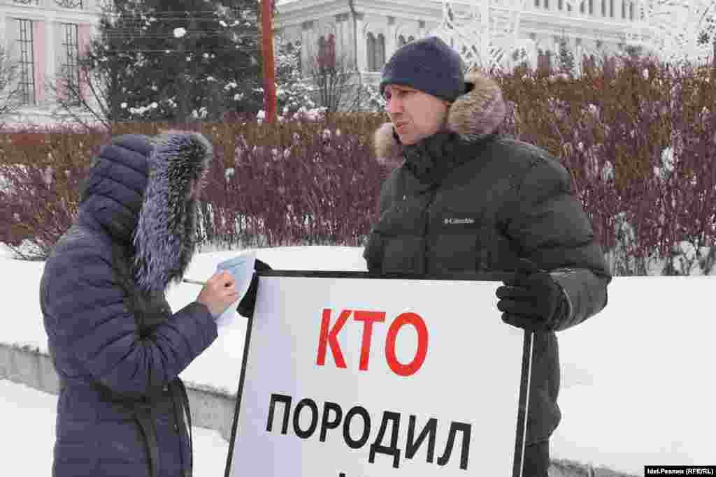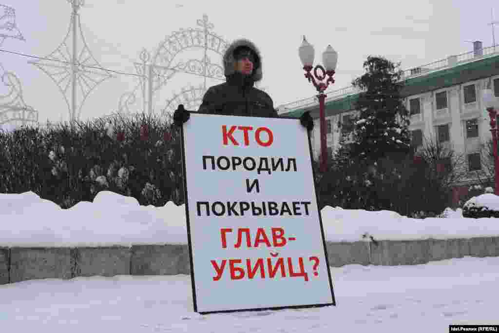 Житель Зеленодольска Алексей Соловьёв 12 января провёл одиночный пикет на площади Свободы в Казани. В руках он держал двусторонний плакат, на одной стороне которого была надпись "Кто породил и покрывает глав-убийц?", на второй — "Батин = Гафуров". Соловьёв провёл параллели между нашумевшим делом ректора КФУ Ильшата Гафурова и своей собственной историей.