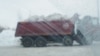 Один из камазистов, опорожнив свой самосвал, выскакивает из машины и лепит снежок, который летит прямо в госномер "Камаза".