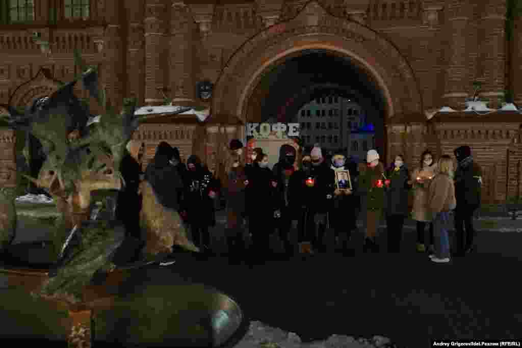 Собравшиеся хотели пройти по улице Баумана траурным маршем, держа в руках зажженные свечи и портрет, но замначальника полиции Казани Сергей Чанкин запретил им делать это, равно как и выкрикивать антивоенные лозунги под угрозой задержания. В итоге после долгого молчания под пристальным присмотром полиции собравшиеся оставили портрет, свечи и цветы у колокольни Богоявленского собора и разошлись.