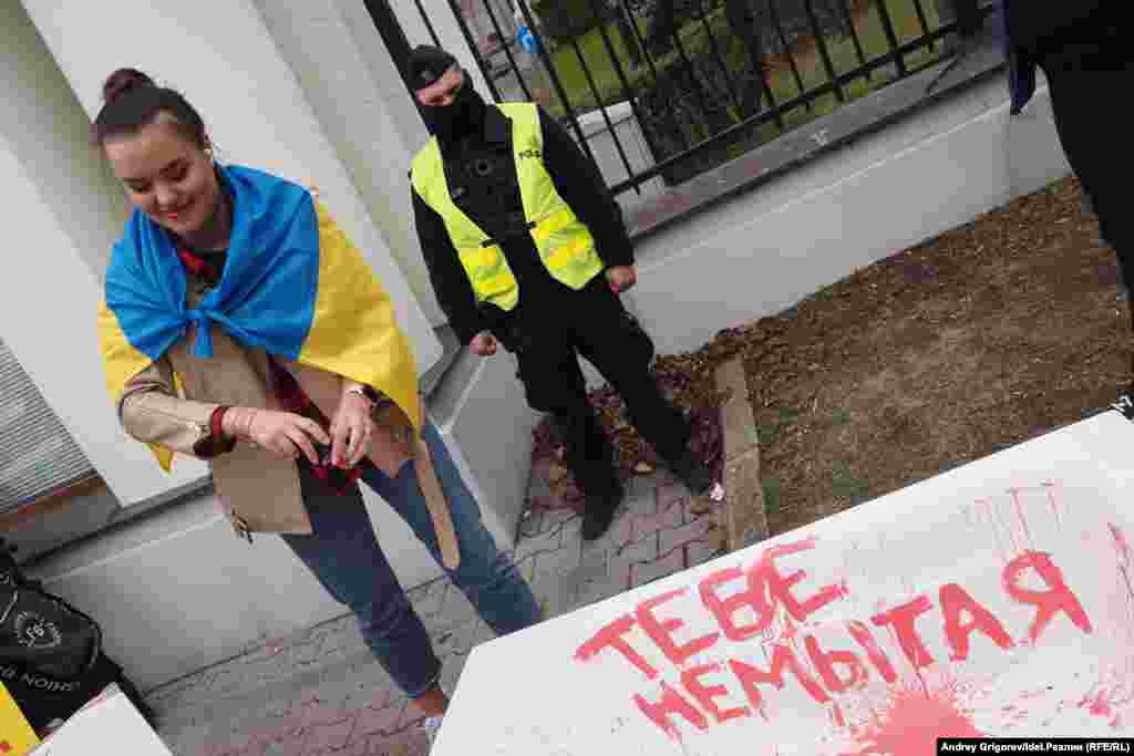 По завершении акции у российского посольства часть протестующих с зажженными свечами переместилась к посольству Украины.