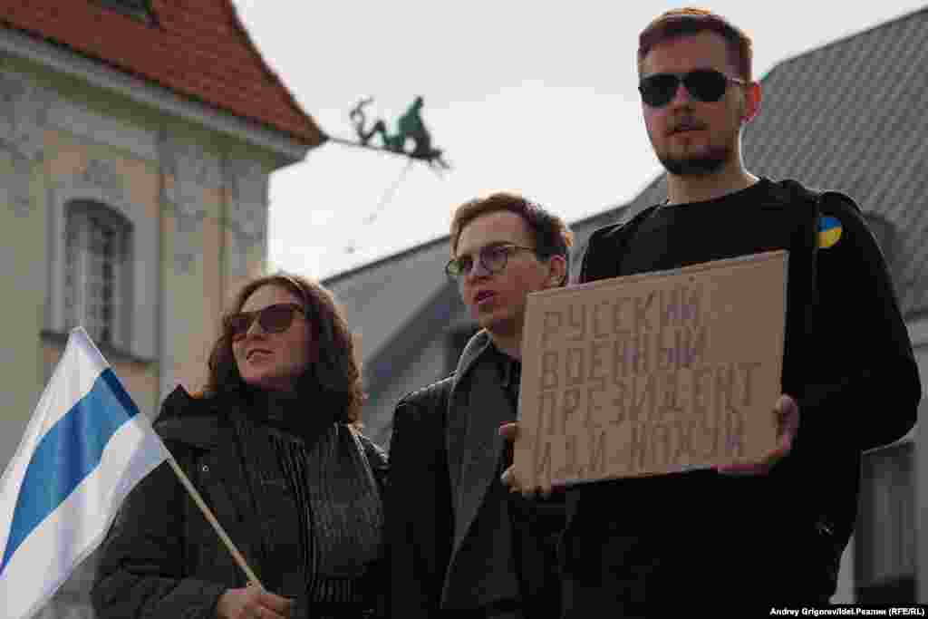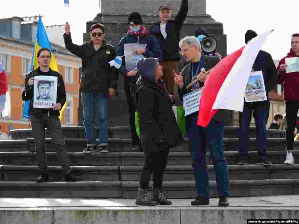 Кроме того, участники акции неоднократно в течение митинга просили украинцев морально поддержать россиян, которые, несмотря на репрессии, продолжают выходить в РФ на акции протеста против войны.