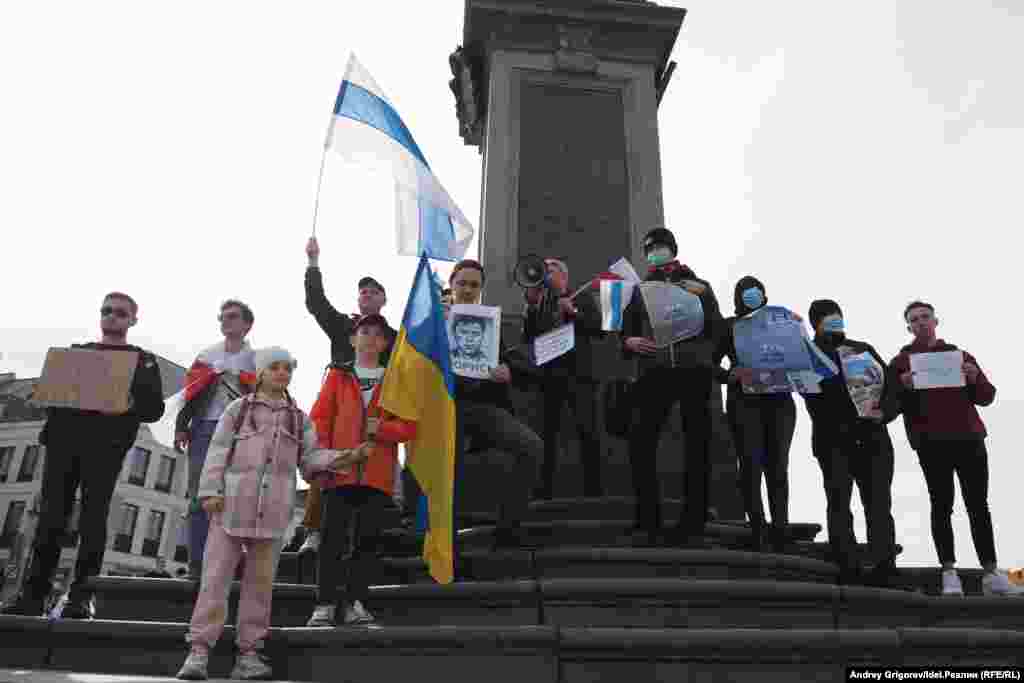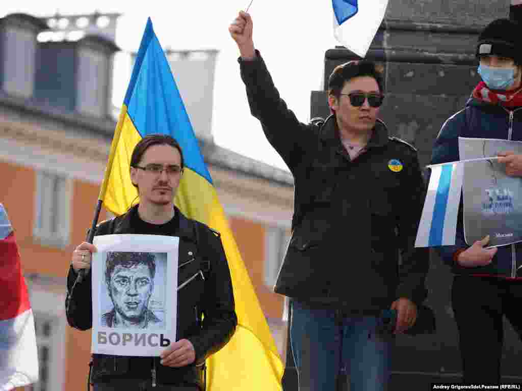 Кроме того, участники акции неоднократно в течение митинга просили украинцев морально поддержать россиян, которые, несмотря на репрессии, продолжают выходить в РФ на акции протеста против войны.