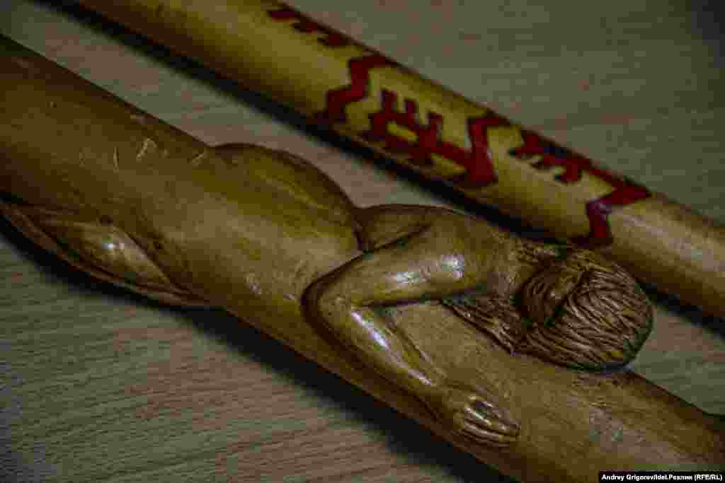 Вторая половина названия, Хузангаево, призвана была сгладить шок, который случался у татарской общественности при виде на дорожных указателях первой части. Пётр Хузангай — чувашский поэт, памяти которого в Сиктерме-Хузангаево посвящен целый музей. В нем корреспондент "Idel.Реалии" побывал несколько лет назад и обнаружил несколько любопытных экспонатов. Например, подаренная поэту трость ручной работы, по которой карабкается обнажённая девушка (снимки 8-9). Или — фотография заспиртованного сердца поэта, переданного "на вечное хранение" музею анатомии Чувашского госуниверситета (снимок 10). "Живое сердце поэта" — так подписан этот снимок.