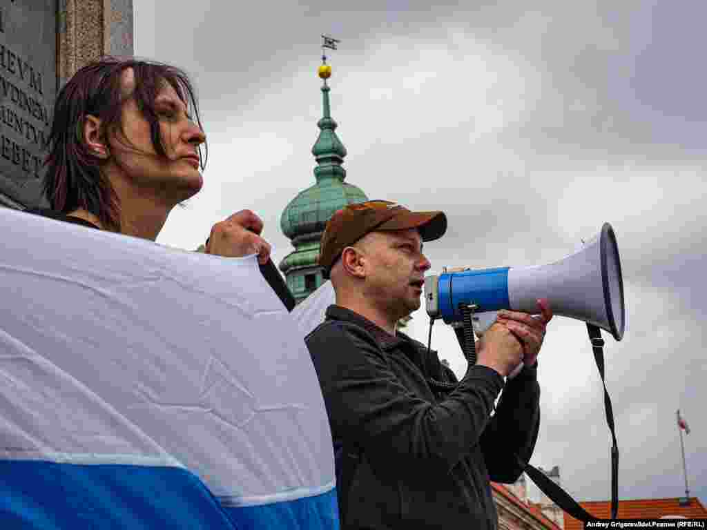 На антивоеную акцию в центре Варшавы вышли два десятка россиян.