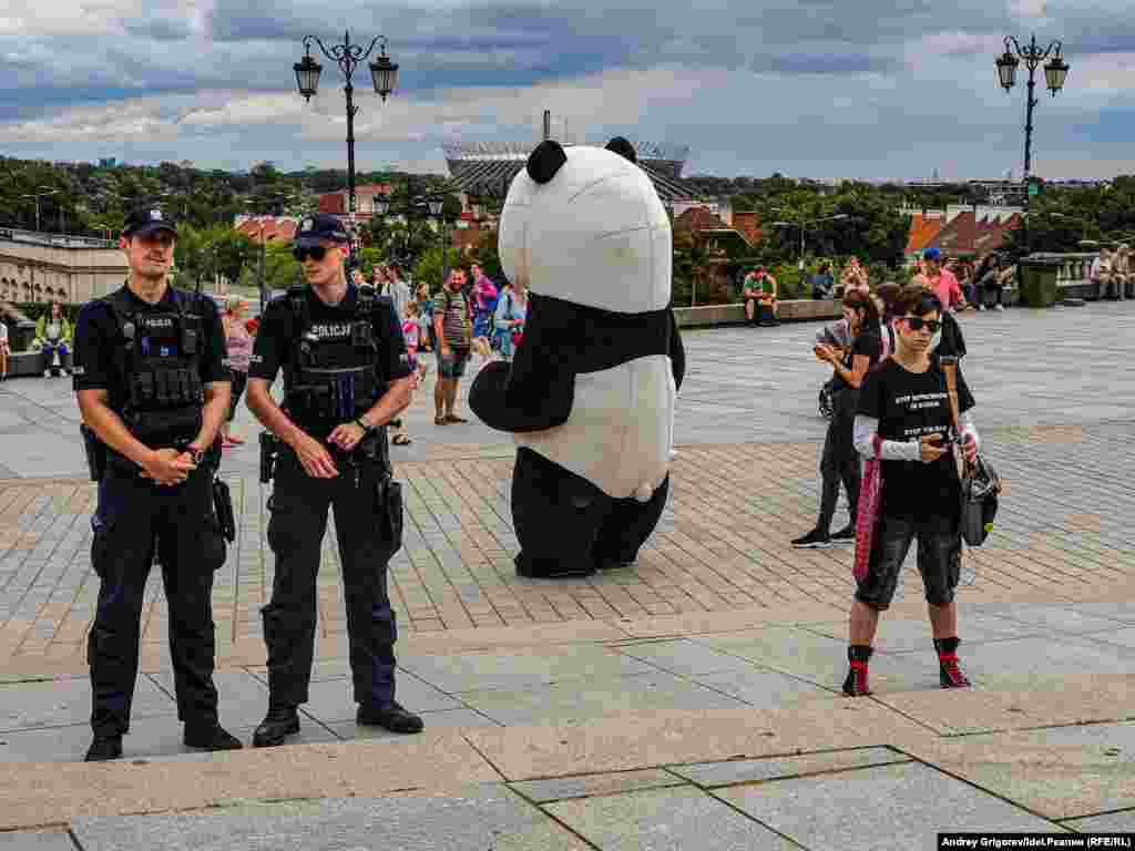 На антивоеную акцию в центре Варшавы вышли два десятка россиян.