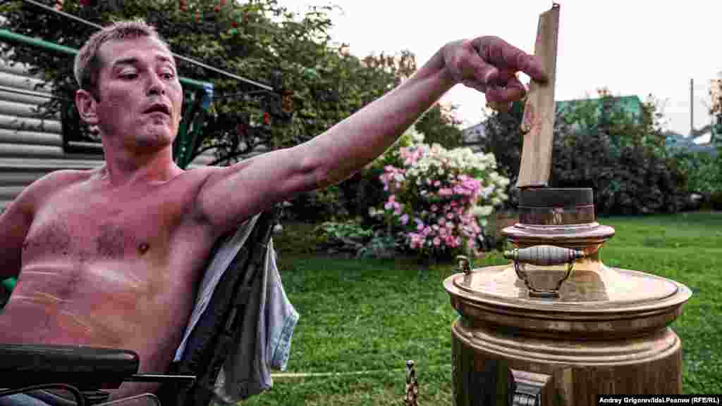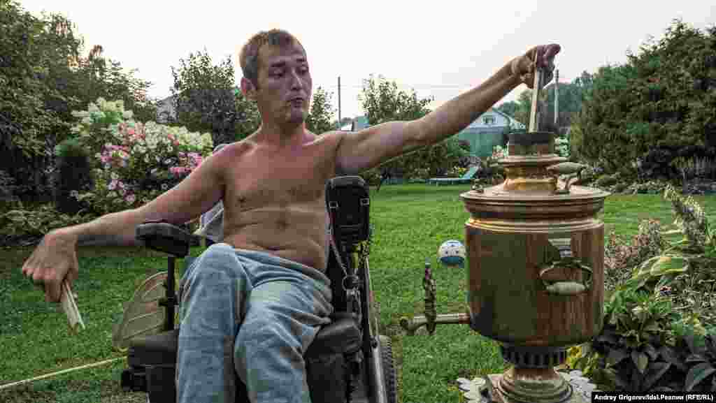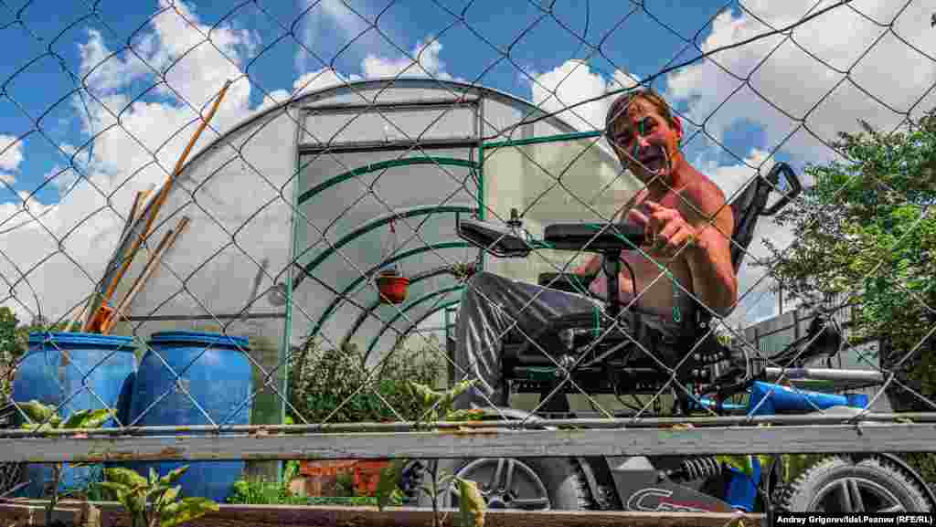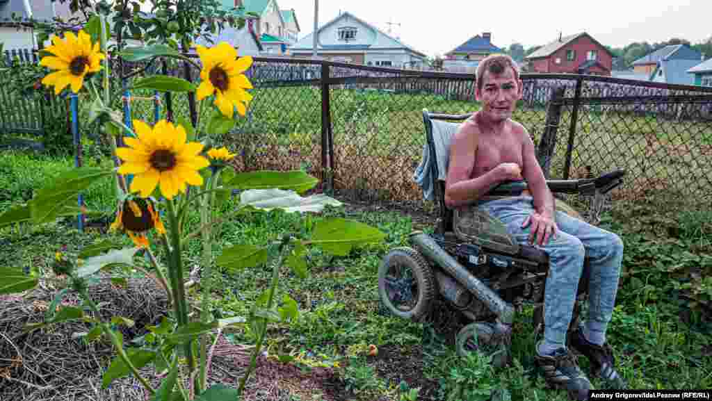 Казанец Антон Кайнов прикован к инвалидной коляске, но это не мешает ему самостоятельно справляться с многочисленными обязанностями по дому. Он живёт в частном доме в казанском посёлке Малые Клыки с большим огородом на заднем дворе и самостоятельно поливает овощи, пропалывает грядки и ухаживает за кустарниками. Правда, в прошлые годы (а снимки относятся к 2019-2020 гг.) делать ему это было намного легче, поскольку он передвигался на дорогих колясках, одну из которых он получил от президента РТ Рустама Минниханова после нескольких месяцев обивания порогов. Но те коляски уже вышли из строя на казанских дорогах, а на тех, которыми инвалидов обеспечивает соцстрах, особо не развернёшься. В конце августа коляска опрокинулась вместе с Антоном, когда он поливал огород. В итоге инвалид почти час пролежал на сырой земле, а теперь хочет засудить чиновников из Фонда социального страхования.