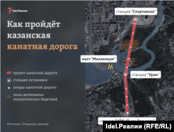 В середине октября стало известно, что проекту строительства канатной дороги от парка Горького до стадиона "Ак Барс Арена", наконец, дана отмашка. Проект почти год обсуждался кулуарно и, по информации "Idel.Реалии", вызвал недовольство даже в управлении архитектуры и градостроительства Казани. Казанские экоактивисты и урбанисты пребывают в не меньшем шоке. Они уже прозвали проект самой дорогой в истории бельевой верёвкой, которая безнадёжно испортит панорамный вид на Казанку и мост "Миллениум", а, кроме того, нанесёт вред природе и даже истории города.