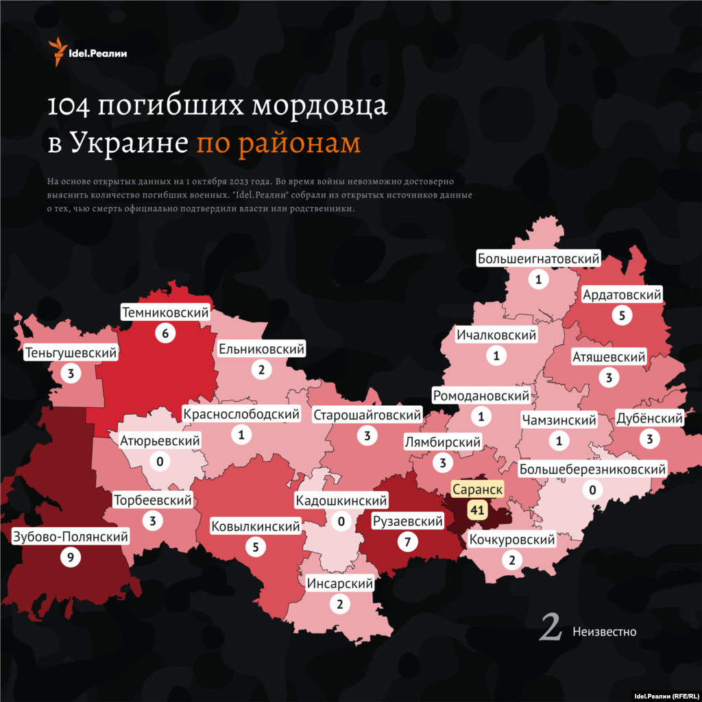 Всего погибшими с начала войны признаны 104 уроженца Мордовии.
