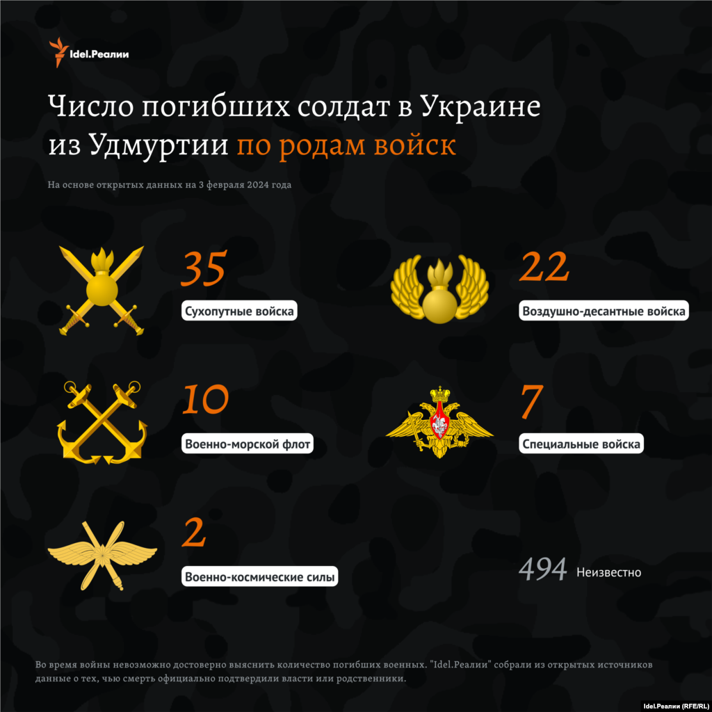 Число погибших в действительности больше, мы руководствуемся лишь данными из открытых источников. По подсчетам "Idel.Реалии", с начала войны погибли 10 305 уроженцев и жителей Поволжья.