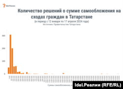 По данным "Idel.Реалии", из 762 сходов, на которых речь шла именно о собираемых деньгах, меньше всего предстоит выплатить жителям деревни Старый Муй Арского района (200 рублей), наибольшую — жителям деревни Гремячий Ключ Зеленодольского района (30 000 рублей). Стоит отметить, что в последнем случае перед сходом граждан стоял вопрос об изменении решения предыдущего схода, прошедшего 19 ноября 2023 года: тогда речь шла о куда более скромной сумме — 500 рублей. Решение приняли пятью голосами при общем количестве избирателей в семь человек.