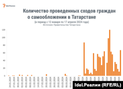 Сходы граждан проводятся в различных населённых пунктах Татарстана на регулярной основе. Так, к примеру, 25 января прошло два схода. Их число резко возросло с 18 марта — сразу после выборов президента, в тот день прошло 87 сходов. Шестого апреля состоялся 121 сход — это максимальное значение за указанный период.