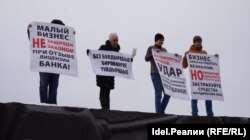 7 марта около двухсот казанцев вышли на пикет клиентов Татфондбанка и Интехбанка в парке Петрова.